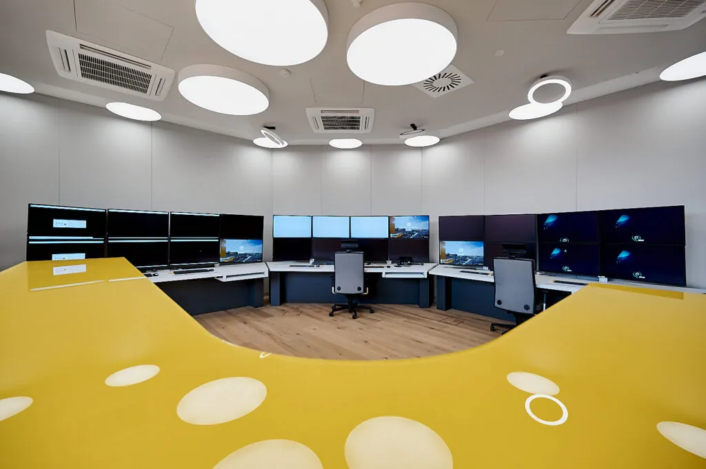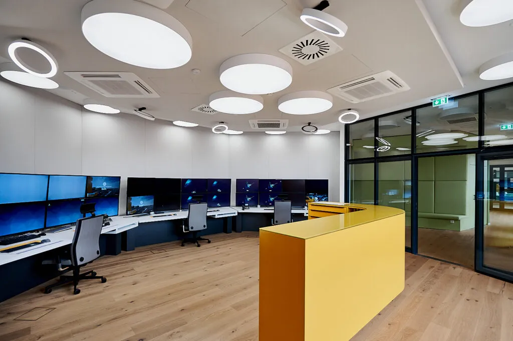 Die Leitwarte ist ein hochfunktionaler Raum mit Monitorwänden und LED‑Lichtquellen. Hier war eine saubere Balance zwischen Belichtungszeit, Farbtemperatur und Spiegelungskontrolle entscheidend. Je nach Blickwinkel nutze ich polarisierende Filter, um Reflexionen zu reduzieren, ohne die Charakteristik der Oberflächen zu verlieren. Gleichzeitig mussten die Bildschirme korrekt belichtet werden, was oft nur mit kurzen Belichtungszeiten und gezielter Mehrfachbelichtung möglich ist.