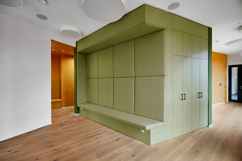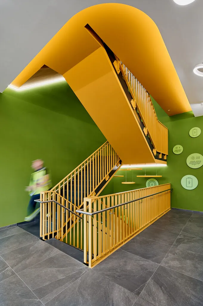 Das Heizkraftwerk wurde Ende 2022 in Betrieb genommen und steht für einen klaren Schritt in Richtung erneuerbarer Energien. Als Fotograf ist es mir wichtig, diese inhaltliche Ebene visuell mitzudenken. Die Innenarchitektur transportiert die Idee von Nachhaltigkeit durch Materialwahl und Formensprache — diese Verbindung aus Technik und Natur habe ich in klaren Kompositionen herausgearbeitet.