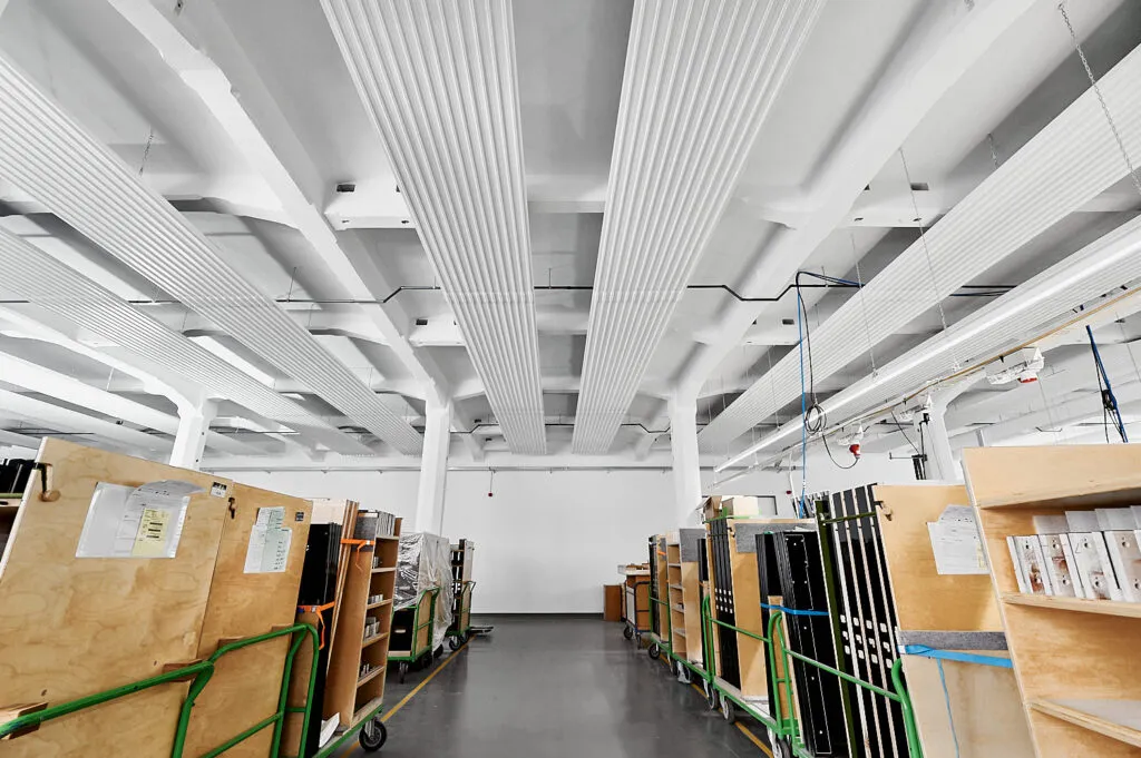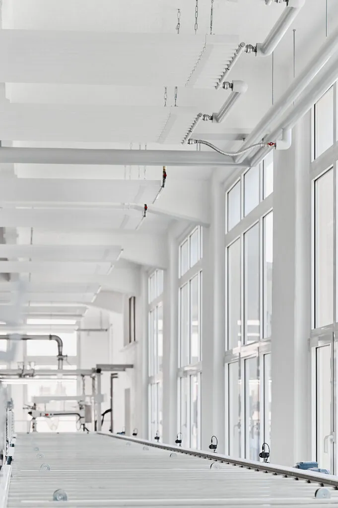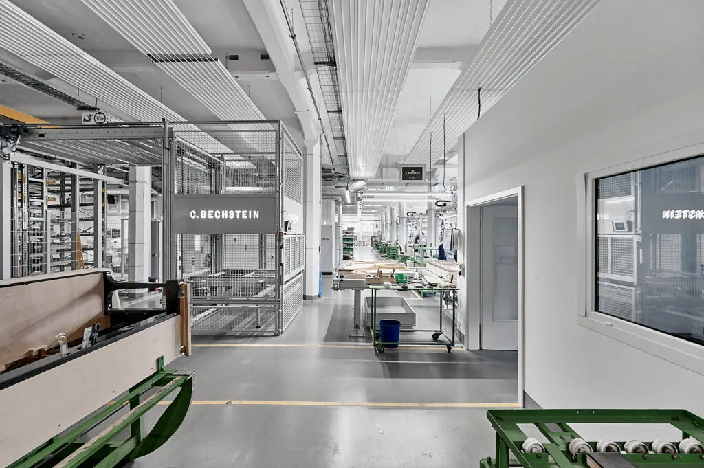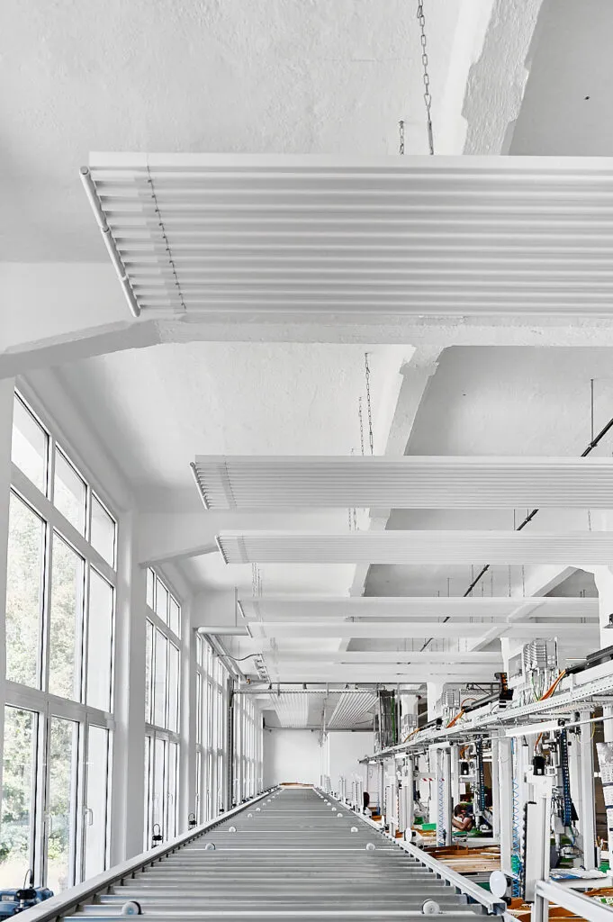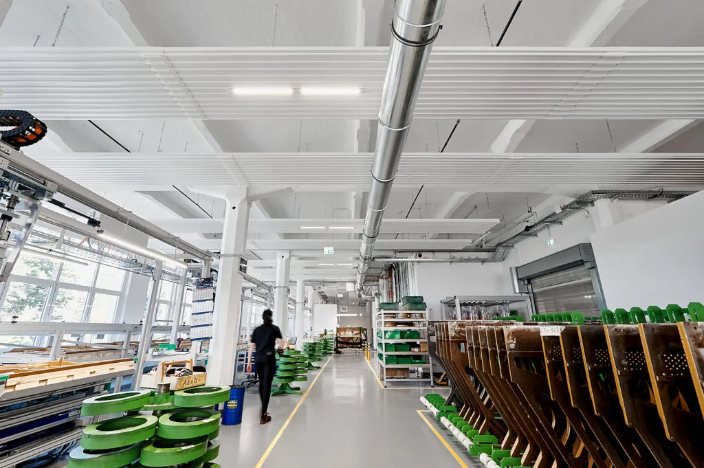 Für Zehnder habe ich die Produktionsräume bei Bechstein in Seifhennersdorf fotografisch begleitet. Der Fokus lag klar auf der installierten Deckenheizung – ein Bauteil, das fotografisch oft übersehen wird, aber technisch eine zentrale Rolle spielt. Um diese Besonderheiten sichtbar zu machen, entstand die komplette Serie aus einer konsequent nach oben gerichteten Perspektive.